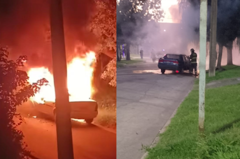 Bomberos apagaron dos incendios de autos en una misma noche.