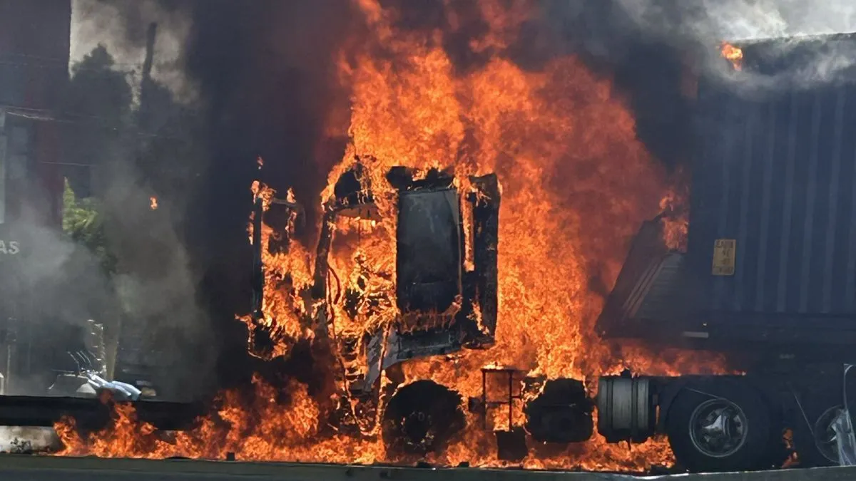 El chofer del camión declaró que se despistó porque explotó una cubierta.