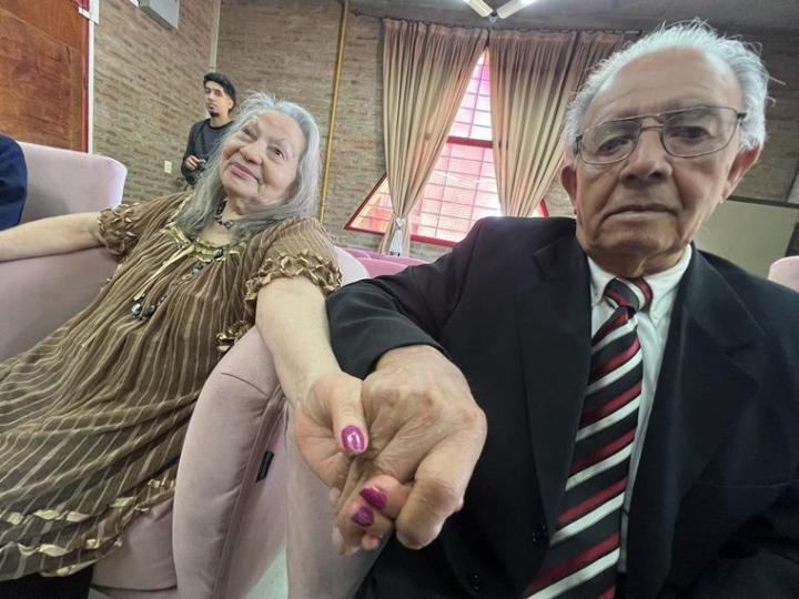 Al ser consultada sobre el porqué se casan a esta edad, la flamante novia dijo: “Tal vez nos casamos ahora porque tenemos los hijos lejos y nos encontramos solos a veces. Nos complementamos queriéndonos y cuidándonos”.