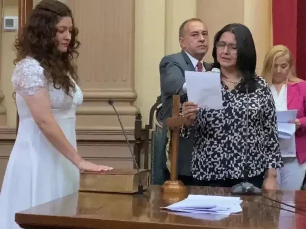 Este viernes se realizó la jura de los nuevos diputados provinciales en Salta y, en ese contexto, se suscitó un hecho insólito: una diputada de La Libertad Avanza (LLA) juró su nuevo cargo vestida de novia y con un anillo.