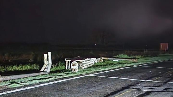 Uno de los problemas fue en la entrada a la ciudad desde Las Rosas, donde el arco con cartel de bienvenida terminó sobre la calzada de la ruta 178. El tránsito estuvo cortado de ambas manos hasta que se retiró el obstáculo y se permitió el paso de vehículos con precaución.