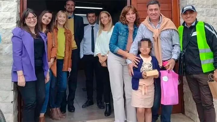 La familia recibe una notificación y va hasta el juzgado del Departamento de General Roca. Una vez en la puerta, ven llegar a un "cartero" en una bicicleta decorada con globos de colores y con un regalo en la mano.