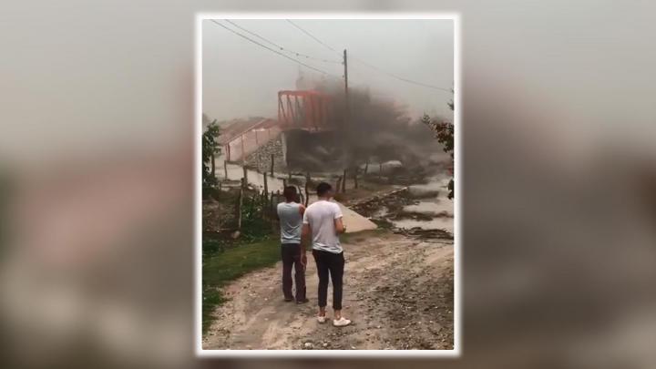 En segundos arrancó el puente, una camioneta y unas viviendas.