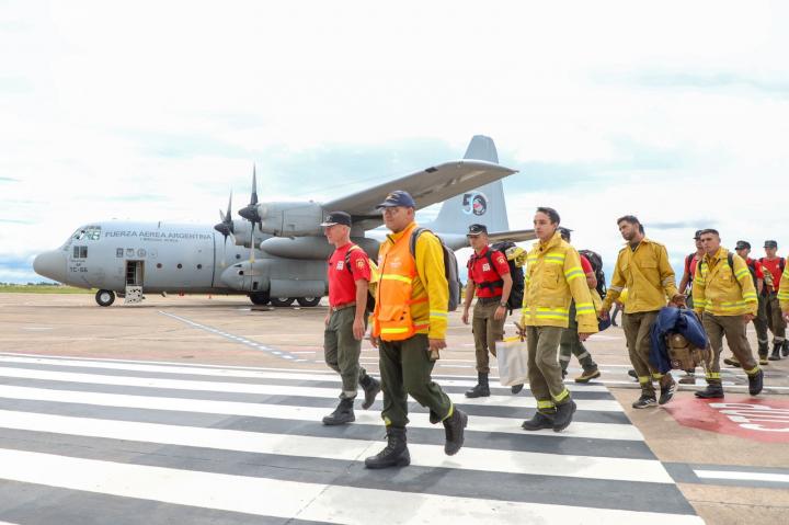 Se trata de un equipo conformado por 45 especialistas de la Brigada Forestal de Santa Fe, integrado por Bomberos Zapadores, Bomberos Voluntarios, personal de la Secretaría de Protección Civil Forestal, paramédicos y especialistas en comunicaciones, quienes habían viajado en un avión Hércules de la Fuerza Aérea.