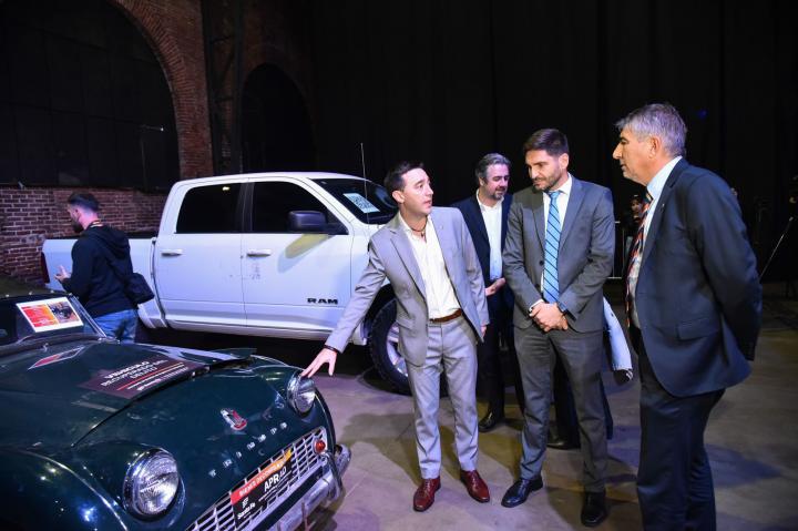 El gobernador Maximiliano Pullaro, junto a los ministros de Justicia y Seguridad, Pablo Cococcioni, y de Gobierno e Innovación Pública, Fabián Bastía, presenció la subasta de 40 vehículos decomisados al delito, que llevó adelante la Agencia Provincial de Registro, Administración y Destino de Bienes y Derechos Patrimoniales (Aprad) este jueves en el salón Metropolitano de la ciudad de Rosario.