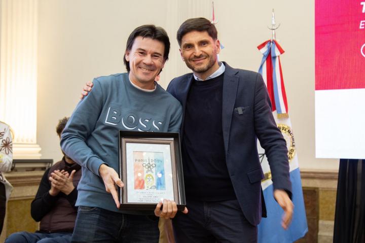 El Gobernador de la Provincia de Santa Fe, Maximiliano Pullaro participó del acto donde se distinguió a los 20 deportistas santafesinos que participaron en los Juegos Olímpicos y Paralímpicos desarrollados en París entre los meses de julio y septiembre.