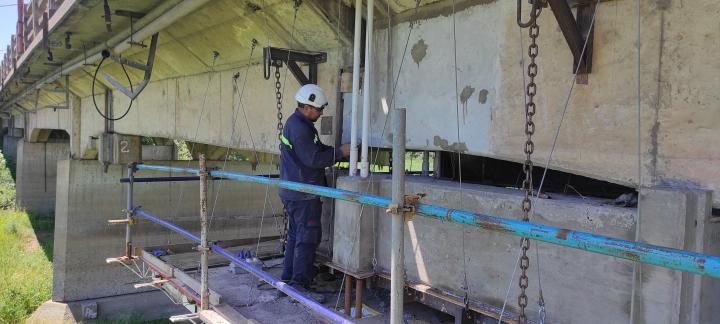 Los arreglos progresan en la zona del apoyo afectado con el desencofrado de las ménsulas.