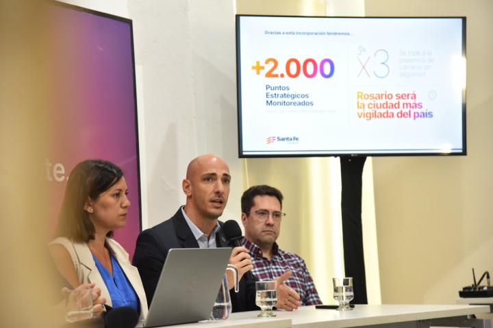 Tabarez explicó que el proyecto contempla “la instalación de una red de fibra óptica en Rosario, San Lorenzo y VGG de casi 80 kilómetros” y que “las cámaras se van a distribuir en casi 2.000 puntos de monitoreo estratégicos en esas ciudades, triplicando la presencia de cámaras”.