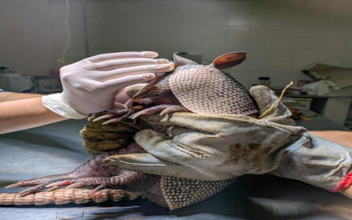 El pasado domingo personal de la Brigada Ecológica y Rescate Animal fue comisionado a una vivienda de la ciudad de Santo Tomé (departamento La Capital) luego que una mujer denunciara que en el baño había un tatú mulita, lo que sugiere que el ejemplar estaba en cautiverio.