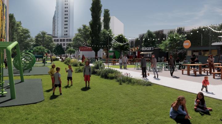 Esta nueva atracción se ubicará en el terreno recorre en forma diagonal la manzana comprendida por Bulevar Pellegrini, 25 de Mayo, San Martín y Cándido Pujato.