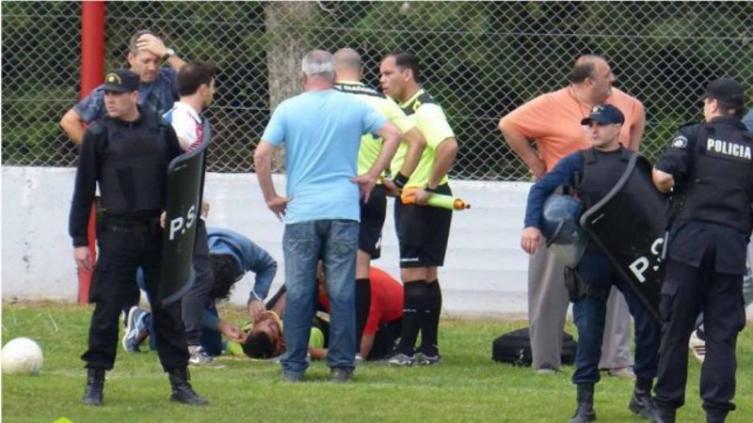 El árbitro asistente quedó inconsciente y debió ser trasladado a un hospital.