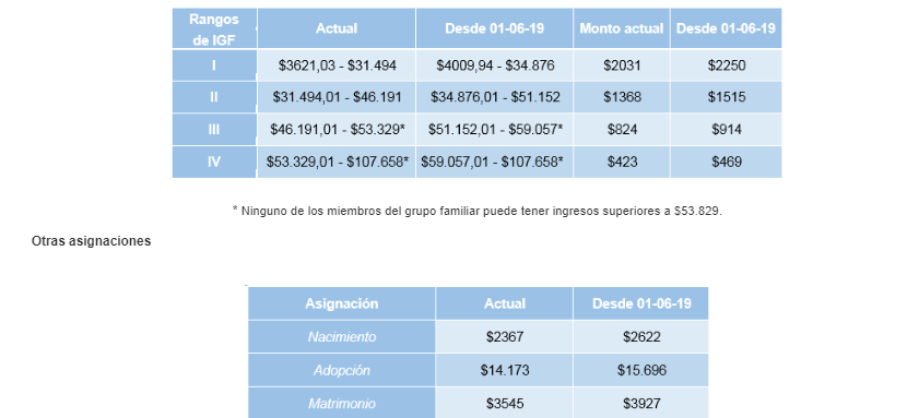 Los nuevos montos y los rangos de ingreso del grupo familiar para las AAFF quedarán conformados de la siguiente manera.