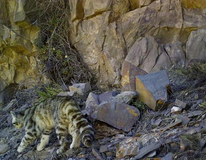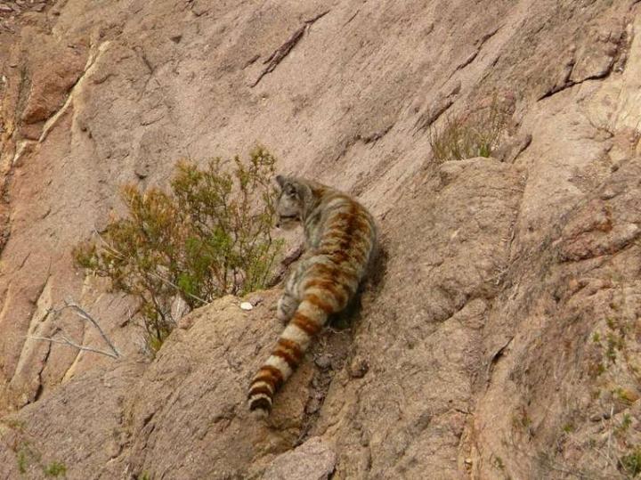 Un gato andino (Leopardus jacobita), que es un felino solitario de tamaño pequeño, un poco más grande que un gato doméstico, que habita en ambientes áridos, fue avistado en la reserva natural y sitio RAMSAR Villavicencio.