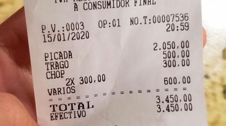 Un grupo de amigos posteó con indignación en las redes el ticket con la cuenta de una picada con bebidas en Villa Carlos Paz y, como todos los años, desató la polémica sobre los precios ofrecidos a los turistas en la villa serrana.