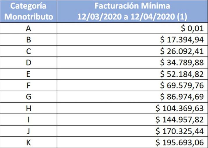 - Que el monto de la facturación electrónica del período comprendido entre el 12 de marzo y el 12 de abril de 2020 haya caído por debajo del promedio mensual del ingreso bruto mínimo de la categoría en la que se encuentre registrado.