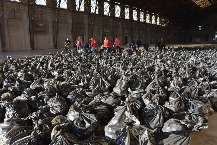Fue un verdadero trabajo de rescate, y los encargados de embolsarlas fueron los jugadores, entrenadores y dirigentes de Santa Fe Rugby en conjunto con un grupo de voluntarios del Banco de Alimentos de Santa Fe.