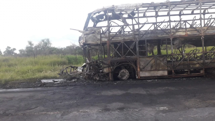 El conductor de un utilitario Fiat Qubo, identificado como Mauro Gastón Lucero, de 21 años, dejó de existir, mientras que los ocupantes del colectivo lograron bajar a tiempo antes de que se incendiara por completo la unidad.