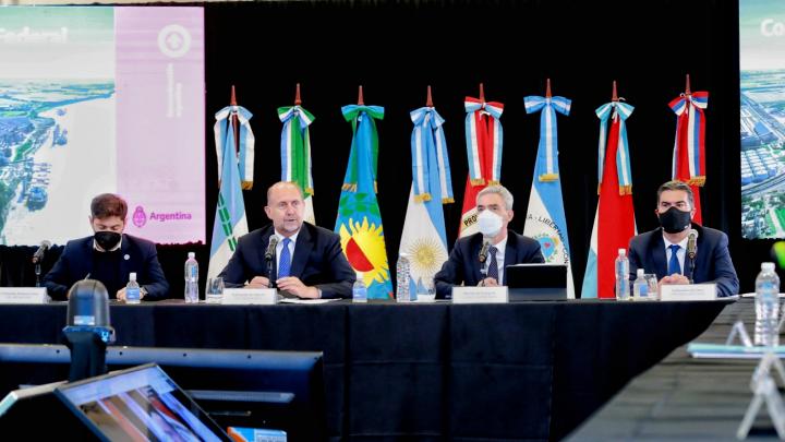 El gobernador de la provincai, Omar Perotti, participó del primer encuentro del Consejo Federal Hidrovía (CFH) que se llevó a cabo este lunes en la sede de la Gobernación en la ciudad de Rosario.