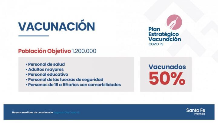 Martorano resaltó que “hasta el día de hoy, las personas vacunadas contra la covid suman 609.267, lo que representa haber alcanzado el 50% de la población objetivo; que incluye al personal de salud, educativo y fuerzas de seguridad. También, a los adultos mayores y a las personas de 18 a 59 años con comorbilidades”.