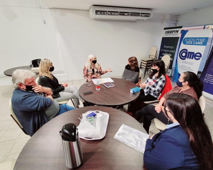 Posteriormente se reunió con la Cámara de Almacenes y Kioscos de la ciudad de Santa Fe, donde fue recibida por Alejandra Aragón, Andrea Ruíz y Ana Laura Gil de esa entidad y Ricardo Leandro Mascheroni de la Unión de Kiosqueros de la República Argentina.