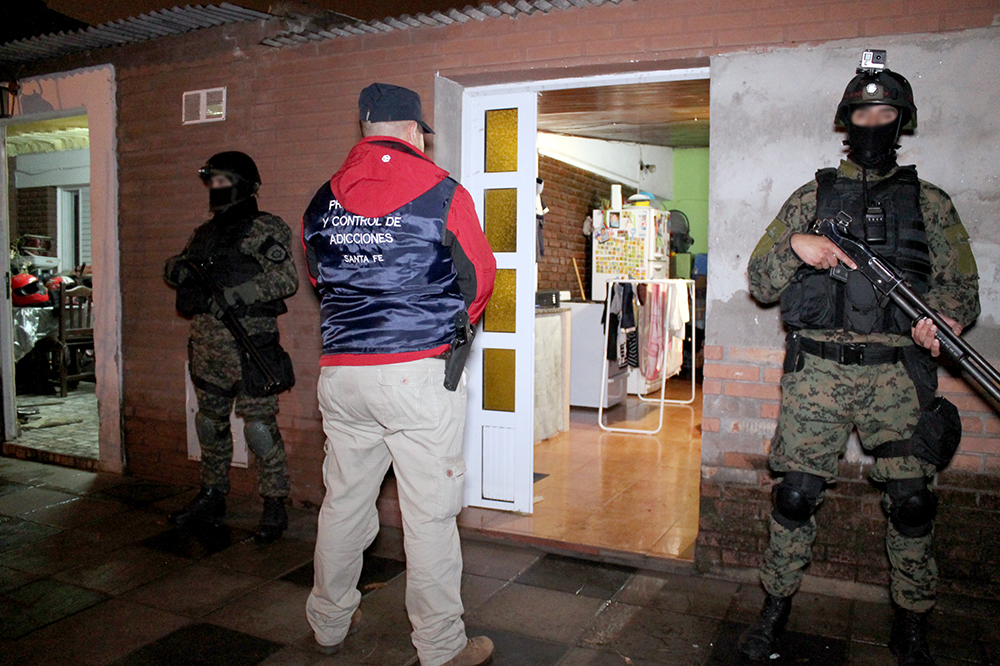 Además, en Casilda personal de la DGPCA, con colaboración de TOE y GAT, también llevó adelante 10 allanamientos con el secuestro de material estupefaciente, armas de fuego, y detenidos.