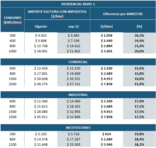 Nivel 1 - Mayores Ingresos: tendrán una reducción del 20% del subsidio aplicado al precio estacional para los consumos registrados a partir 1 de septiembre y un retiro gradual del 40% en noviembre y enero, respectivamente.