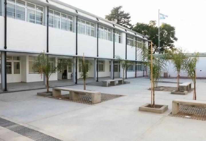 El proyecto conservó la fachada patrimonial de la ochava de calle Rivadavia, en su intersección con el bulevar San Martín, como sello distintivo y emblemático de la escuela para con la comunidad.