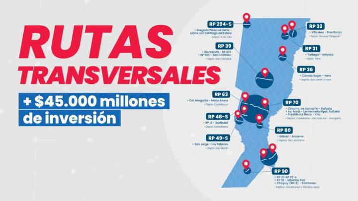 Con una inversión actualizada superior a los $45.000 millones, se están ejecutando obras en 11 rutas transversales de la provincia, abarcando a 12 departamentos.