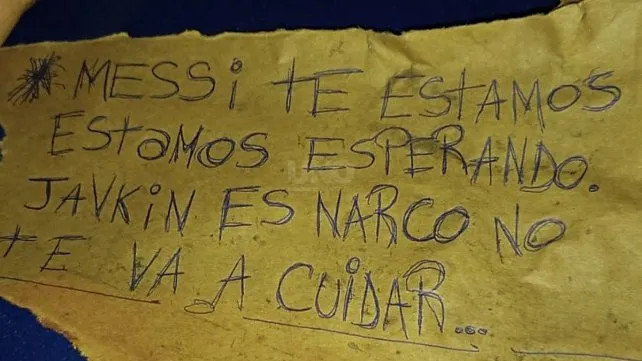 Además de los disparos, en el lugar se encontró un mensaje dedicado al capitán de la selección argentina: "Messi te estamos esperando, Javkin no te va a cuidar".