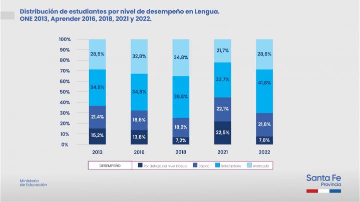 Asimismo, el titular de Educación sostuvo que “tanto las inversiones en infraestructura como el Boleto Educativo Gratuito para asistir a las escuelas son contributivas de los logros pedagógicos obtenidos por los estudiantes, porque mejoran las condiciones materiales de la enseñanza y el trabajo de los educadores. Por ello es legítimo y equitativo reconocer el trabajo de los docentes de educación primaria, de las familias y especialmente a los y las estudiantes que enfrentaron el desafío de una prueba estandarizada, por ello en el año 2022 se logró recuperar y reparar los daños que hizo la pandemia en el sistema educativo y particularmente en la construcción de saberes”.