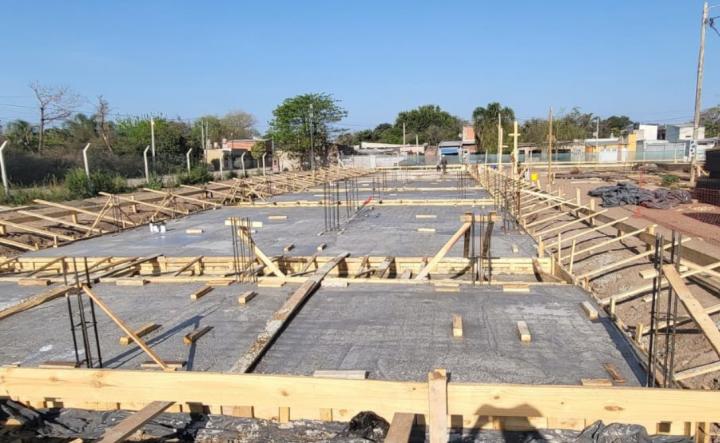 En el mes de agosto los trabajos preliminares sumaron un importante avance de obra y en el mes de septiembre se dio inicio formal a la obra donde comenzaron los trabajos de fundaciones con un promedio total de 60 operarios y otros 7 profesionales en obra, quienes ya se encuentran trabajando en lo que respecta a plateas de hormigón armado, realizando el armado de hierros y el colado del hormigón.