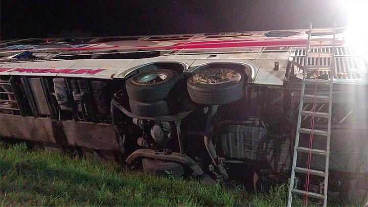 El siniestro vial ocurrió pasadas las 10 en el kilómetro 159 de la ruta nacional 14, cuando la unidad de la empresa Flecha Bus se despistó y volcó, quedando sobre el cantero central, en momentos en que se registraba una lluvia de cierta intensidad.