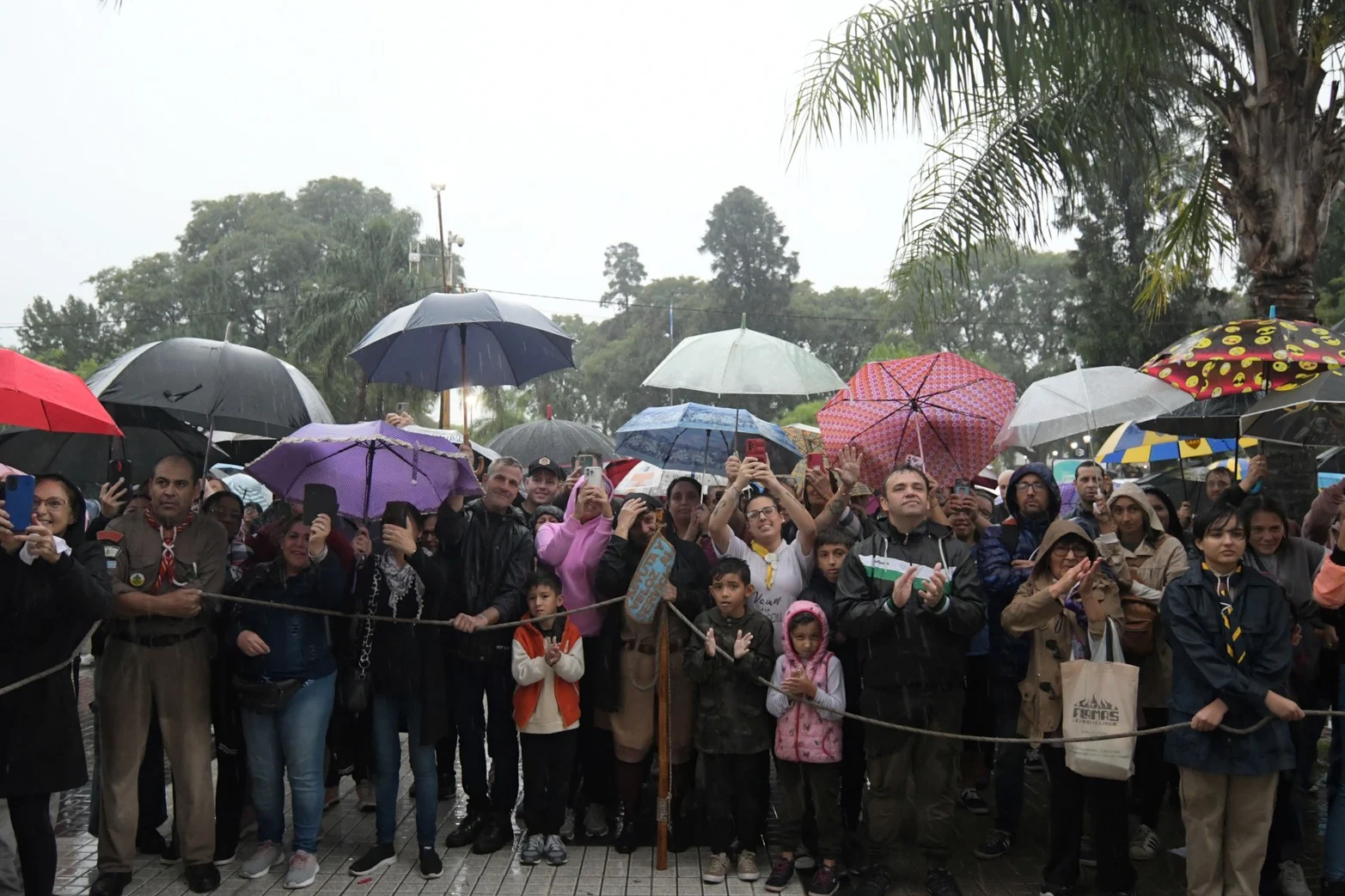 Había ancianos acompañados por sus hijos, familias enteras compartiendo el mate bajo la lluvia incesante, y jóvenes, muchos jóvenes.