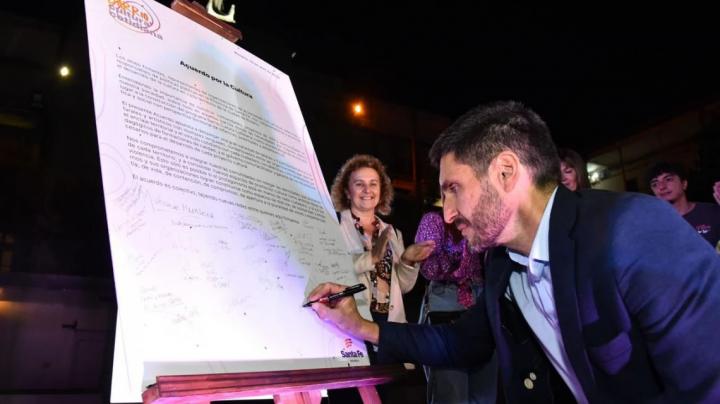 Fue en una actividad abierta a todo público que contó con la presencia de la vicegobernadora Gisela Scaglia; de la ministra de Cultura, Susana Rueda; del ministro de Educación, Jose Goity; y de la diputada provincial, Clara García, quienes junto al gobernador firmaron el "Acuerdo para la cultura" con organizaciones sociales y vecinales de Rosario.
