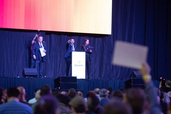 El gobernador Maximiliano Pullaro, junto a los ministros de Justicia y Seguridad, Pablo Cococcioni, y de Gobierno e Innovación Pública, Fabián Bastía, presenció la subasta de 40 vehículos decomisados al delito, que llevó adelante la Agencia Provincial de Registro, Administración y Destino de Bienes y Derechos Patrimoniales (Aprad) este jueves en el salón Metropolitano de la ciudad de Rosario.