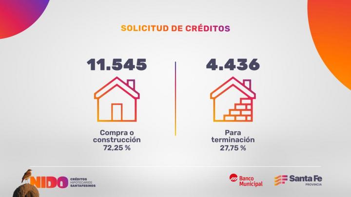 A una semana del lanzamiento de los Créditos Nido, se conocieron detalles de los interesados en acceder a las líneas de préstamo que ofrecen el Gobierno provincial y el Banco Municipal para construir, adquirir o finalizar sus viviendas con la tasa más baja del país, con una inversión de $ 60.000 millones y a los que se puede acceder a través del sitio web Santa Fe Gob Ar -Nido Créditos Hipotecarios-.