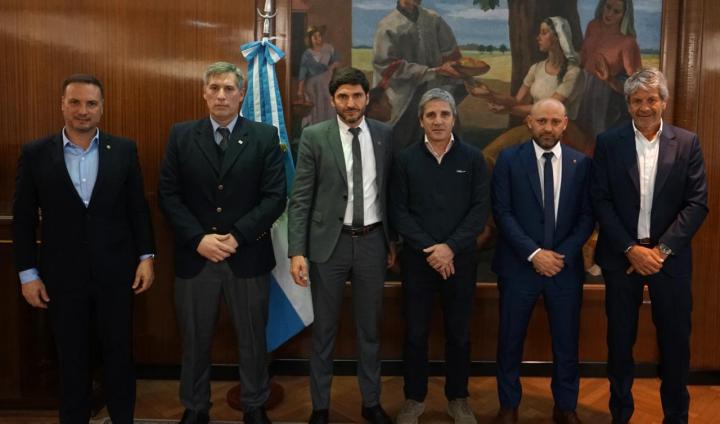 Con el objetivo de avanzar en la deuda que Nación tiene con la provincia de Santa Fe y buscar financiamiento para la realización de obras de infraestructura para el sector productivo, el gobernador Maximiliano Pullaro, junto con los ministros de Economía, Pablo Olivares, de Desarrollo Productivo, Gustavo Puccini, y de Obras Públicas, Lisandro Enrico, se reunieron este jueves en Buenos Aires con el ministro de Economía de la Nación, Luis Caputo.