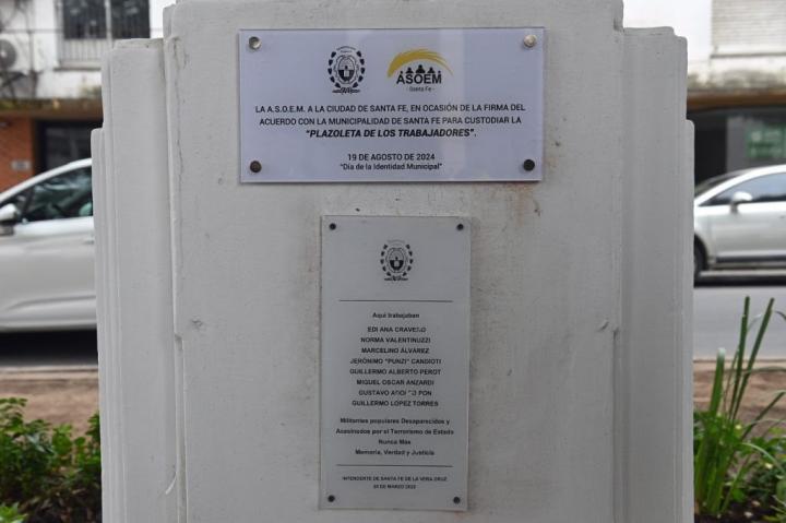 En la Plazoleta de los Trabajadores, ubicada frente a la Municipalidad de Santa Fe, se realizó la firma del convenio de custodia a la plazoleta que fue puesta en valor por personal municipal, tras dos meses de trabajos de mantenimiento y restauración de elementos con importante carga simbólica.