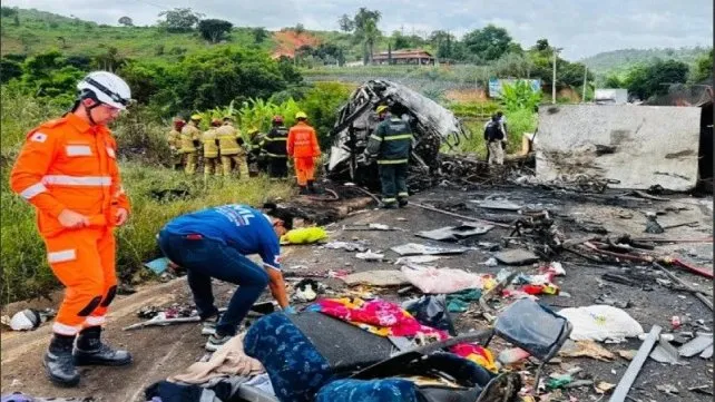 Una tragedia vial enlutó este sábado Brasil. Al menos 38 personas murieron en la madrugada de este sábado en un accidente que involucró a un autobús, un camión y un vehículo de turismo en el estado de Minas Gerais, Brasil.