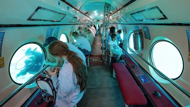 El sitio web de Sindbad Submarines continúa: "Ofrece 44 asientos para pasajeros: dos asientos para el piloto y una amplia ventana redonda para cada pasajero"