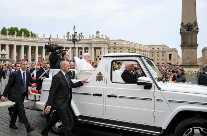Tras la bendición, recorrió la plaza en el papamóvil, donde saludó a los fieles y bendijo a algunos bebés.