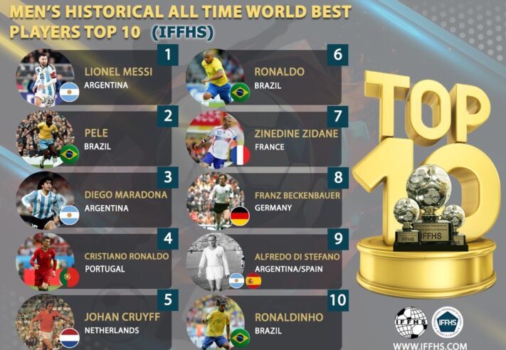 La Federación Internacional de Historia y Estadística del Fútbol (IFFHS) publicó recientemente un ranking con los diez mejores futbolistas de la historia, donde el astro argentino Lionel Messi, máximo ganador de títulos y de balones de oro, se quedó con el primer puesto de la nómina, su rival más cercano Cristiano Ronaldo no ingresó ni siquiera al Top 3.