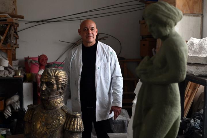 “Este es el busto de Alem, una obra de Raquel Minetti, y, un poco más allá, el de Belgrano, que retiramos la semana pasada del convento de Santo Domingo para devolverle su esplendor”, describe Eduardo, el encargado del Taller de Conservación y Restauración de Esculturas.