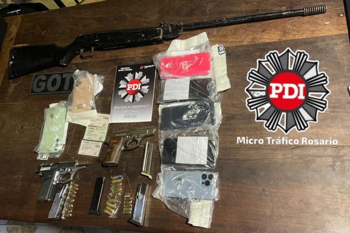 Durante los operativos, los agentes incautaron dos armas de fuego, municiones, cargadores, 18 teléfonos móviles, tres motocicletas, un cuatriciclo, dinero en efectivo, dos pendrives y documentación considerada de interés para la causa.