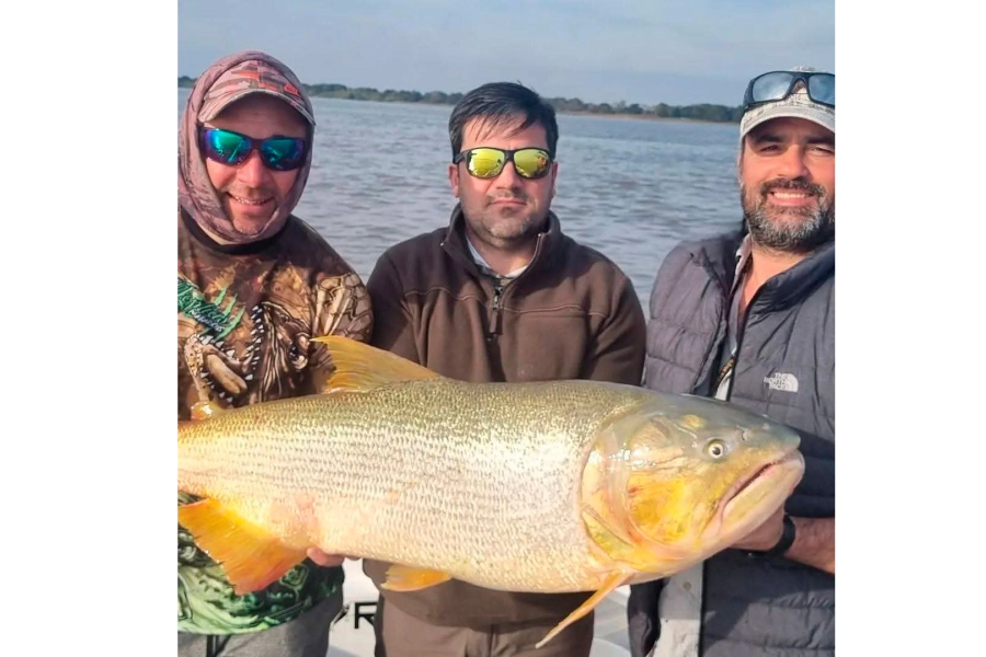 La pesca deportiva en Esquina volvió a ser noticia con una captura que sorprendió a todos. Un grupo de pescadores de Dolores, Buenos Aires, logró atrapar un dorado de 1,10 metros y 30 kilos en aguas del río Paraná, frente a la localidad correntina.