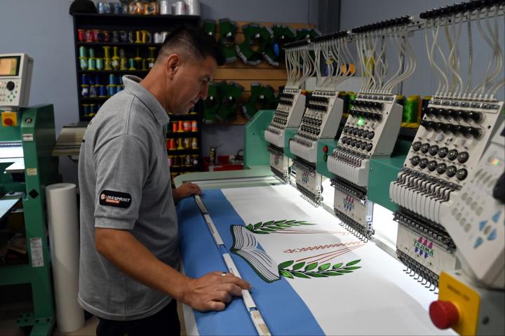 Gabriel Calamante es el encargado del área de bordado de la empresa y relató el desafío técnico que significa.