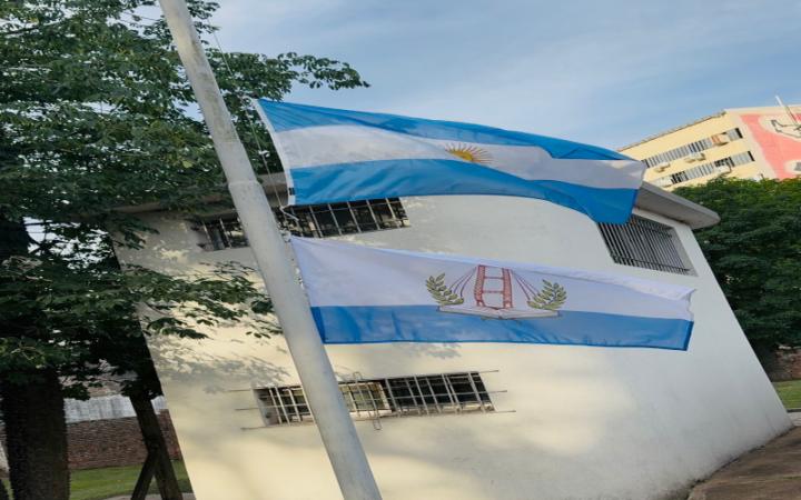Al momento de dirigirse al público sostuvo: “La bandera es a partir de hoy nuestro lazo, el que nos va a unir, el que nos va a convocar, el que nos va a dar identidad. Porque esa es precisamente la función de los símbolos, unirnos, juntarnos, construirnos, hacernos más humanos”.