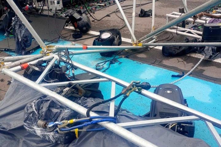 El desplome del escenario se produjo cuando las ráfagas alcanzaron intensidad suficiente para desestabilizar la estructura principal.