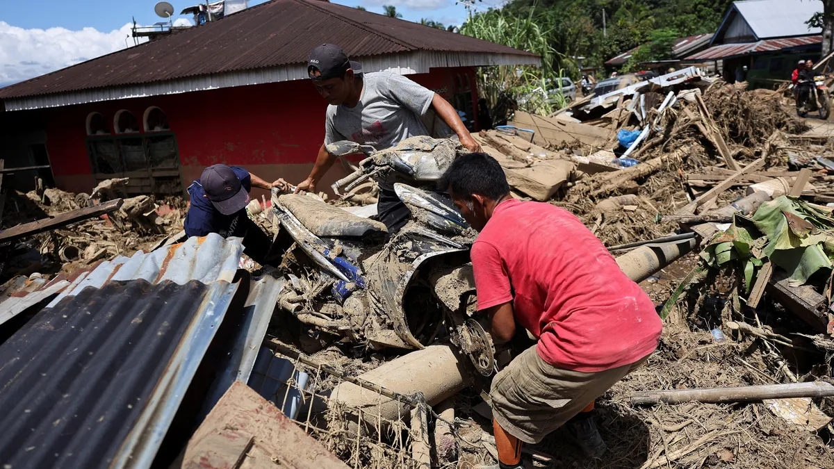 En la ciudad de Palembayan, en Sumatra Occidental, Indonesia, cientos de personas limpiaban el barro, los árboles y los escombros de las carreteras bajo el sol y un cielo azul despejado, mientras algunos residentes intentaban salvar objetos de valor, como documentos y motocicletas, de sus casas dañadas.