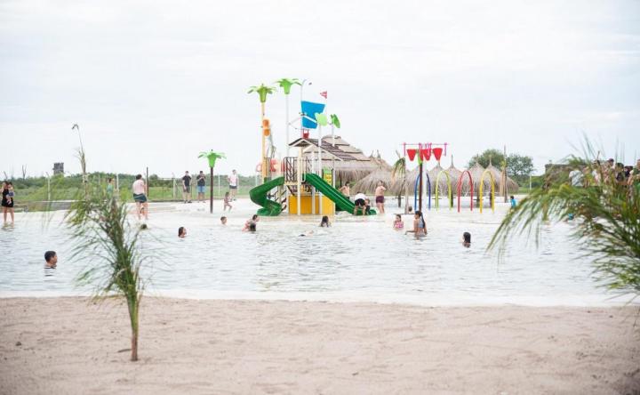 El parque acuático de Miramar de Ansenuza con vista a la laguna